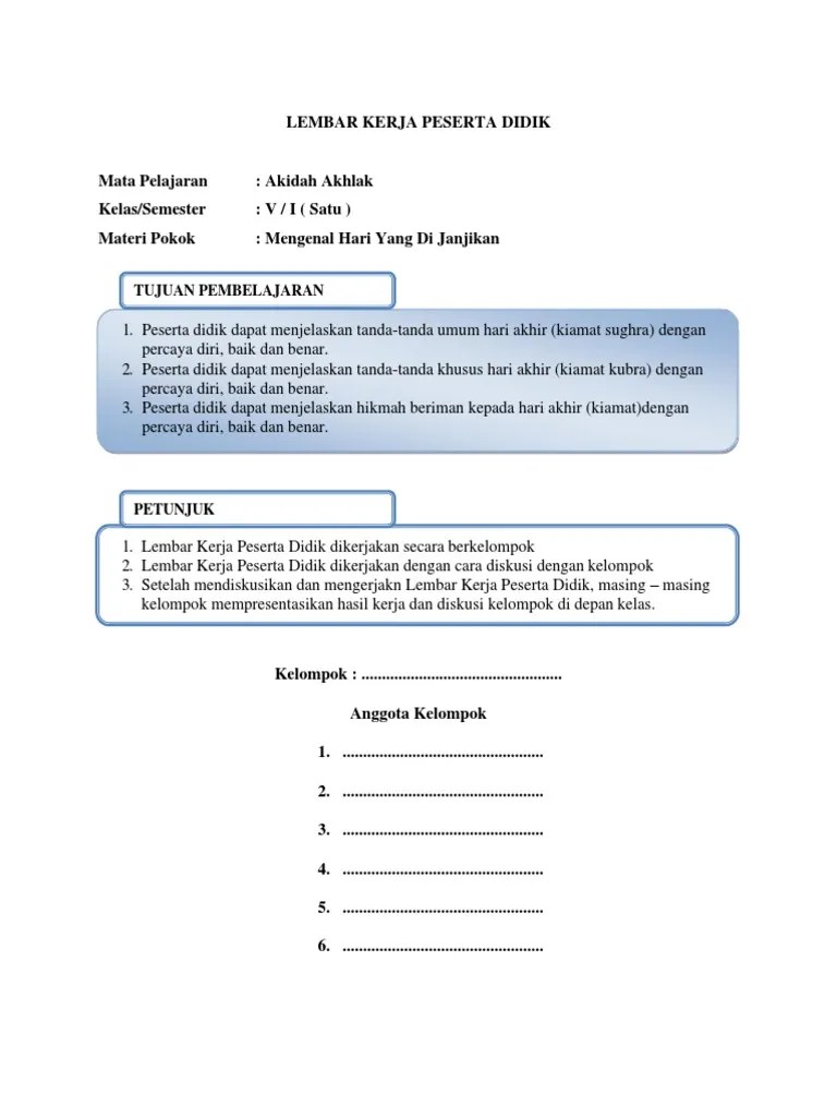 Contoh Lembar Kerja Peserta Didik Akidah Akhlak Mi : Contoh Soal Aqidah Akhlak Kelas 2 Mi Mi Ma Arif Surotrunan - Buku pelajaran akidah akhlak dilengkapi lembar kerja siswa untuk mi kelas 1.